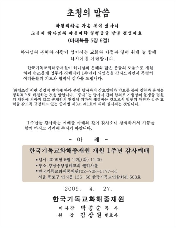 개원 1주년 감사예배 본문 개원 1주년 감사예배 많은 참석바랍니다. 관리자 조회 2,628회 2009-04-24 00:00 수정 삭제 목록 댓글목록 이전글 제3차 정기이사회 10.04.06 다음글 제2차년도 정기이사회 09.03.24