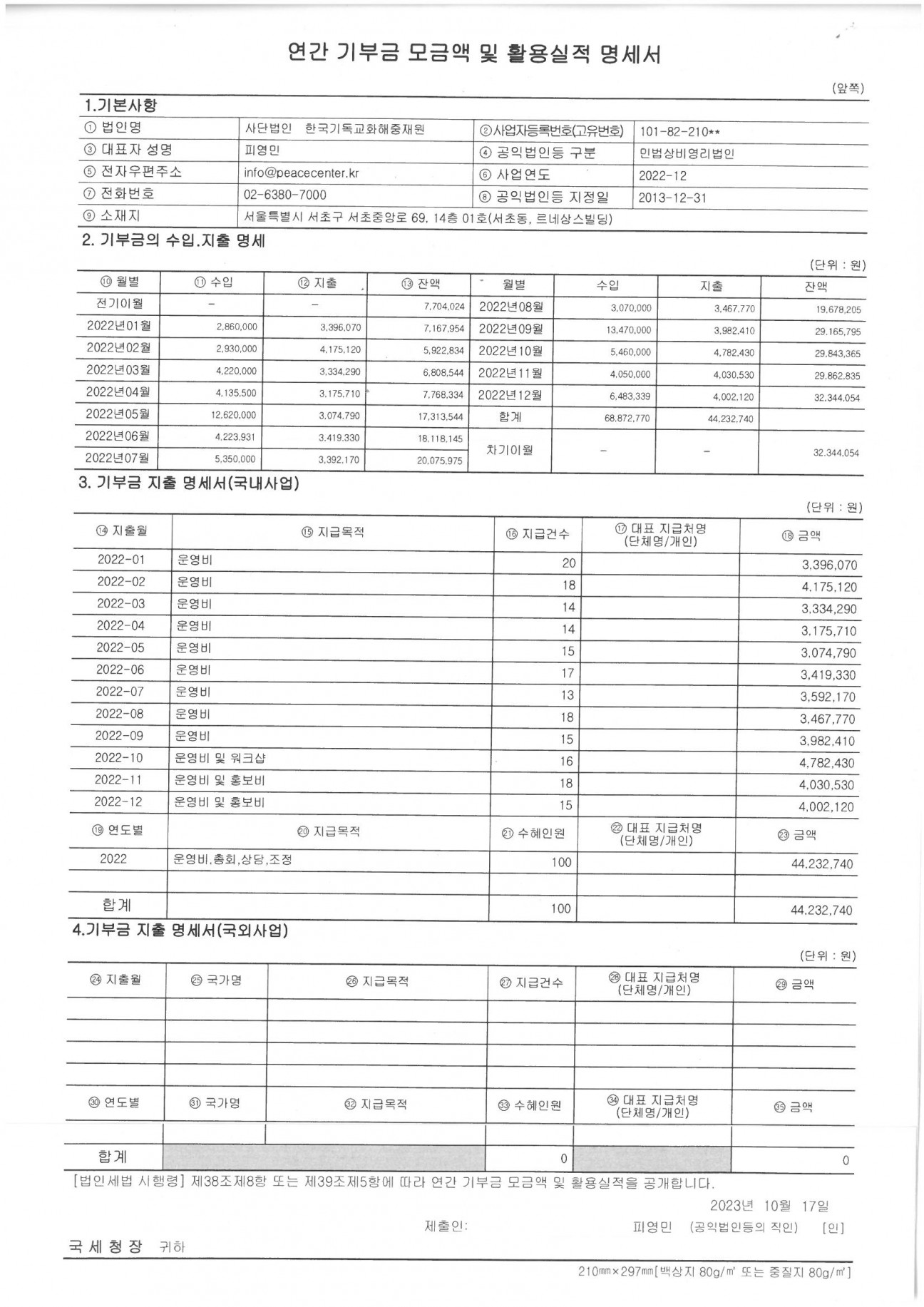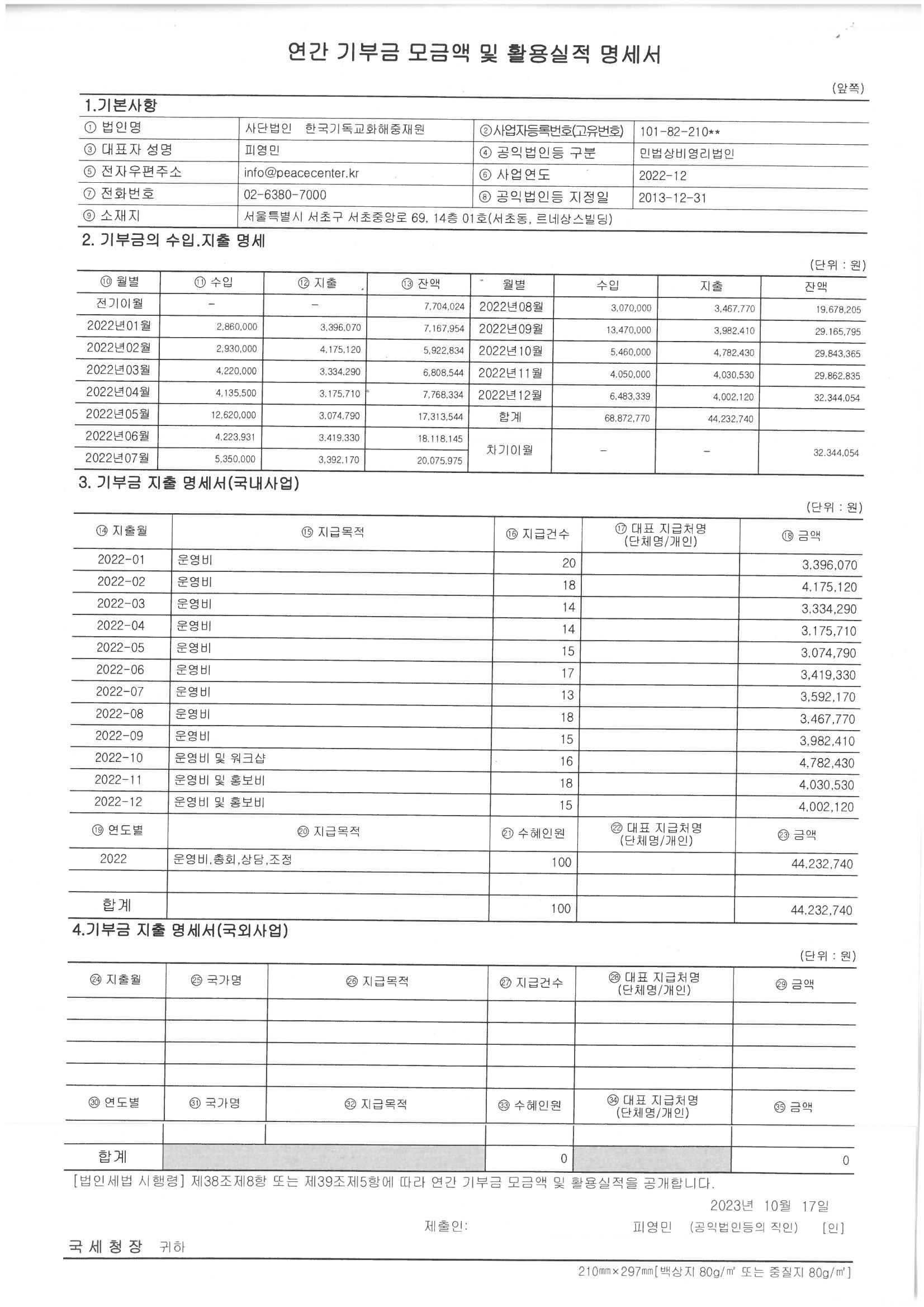 2022년 연간 기부금모금액 및 활용실적명세서 본문 2022년 연간 기부금모금액 및 활용실적명세서 2022년 연간 기부금모금액 및 활용실적명세서 관리자 조회 908회 2023-10-17 16:08 목록 댓글목록 이전글 2023년 연간 기부금모금액 및 활용실적명세서 24.03.28 다음글 2022년 공익법인 결산서류 등의 공시 23.08.10