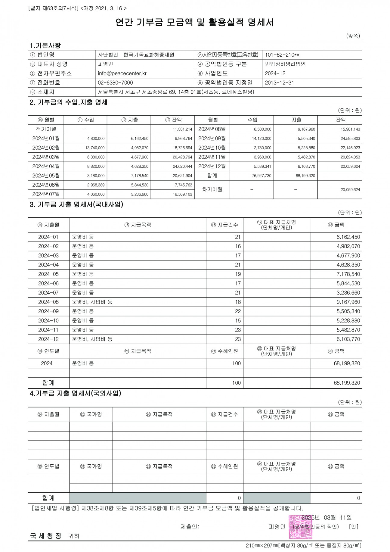 2024년 연간 기부금모금액 및 활용실적명세서 본문 2024년 연간 기부금모금액 및 활용실적명세서 2024년 연간 기부금모금액 및 활용실적명세서 관리자 조회 628회 2025-03-12 14:37 목록 댓글목록 다음글 2023년 연간 기부금모금액 및 활용실적명세서 24.03.28