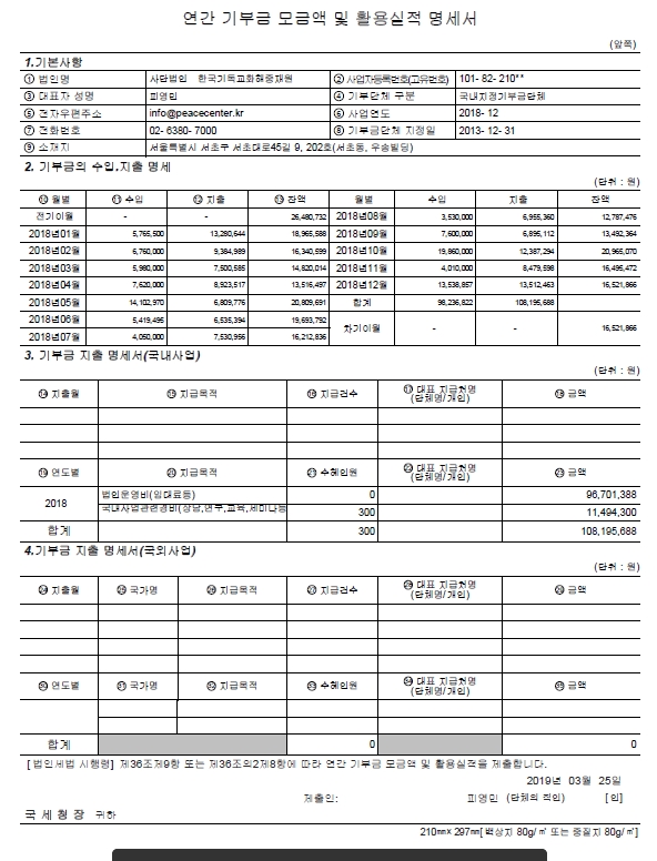 2018년 연간 기부금모금액 및 활용실적명세 본문 2018년 연간 기부금모금액 및 활용실적명세 2018년 연간 기부금모금액 및 활용실적명세 관리자 조회 1,135회 2019-03-25 00:00 수정 삭제 목록 댓글목록 이전글 2019년 연간 기부금모금액 및 활용실적명세 20.02.25 다음글 2017년 연간 기부금모금액 및 활용실적명세 18.03.26