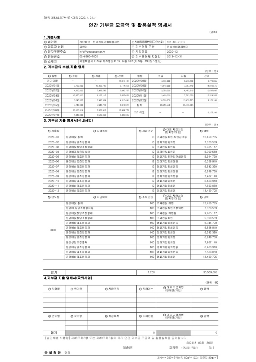 2020년 연간 기부금모금액 및 활용실적명세 본문 2020년 연간 기부금모금액 및 활용실적명세 2020년 연간 기부금모금액 및 활용실적명세 관리자 조회 1,152회 2021-03-30 00:00 수정 삭제 목록 댓글목록 이전글 2021년 연간 기부금모금액 및 활용실적명세 22.07.28 다음글 2019년 연간 기부금모금액 및 활용실적명세 20.02.25