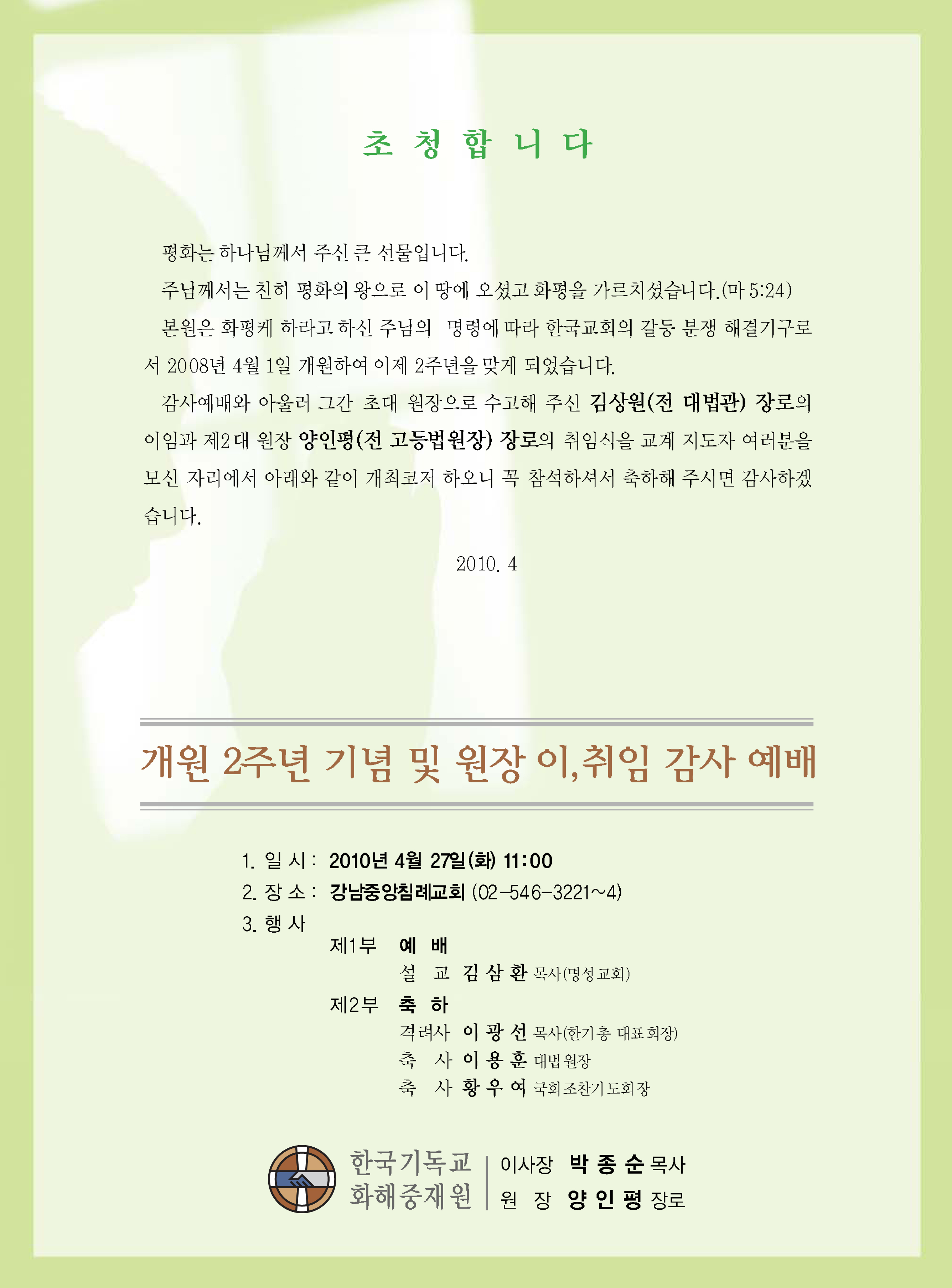 개원 2주년 기념 및 원장 이취임 감사예배 본문 개원 2주년 기념 및 원장 이취임 감사예배 개원 2주년 기념 및 원장 이취임 감사예배 관리자 조회 2,314회 2010-04-13 00:00 수정 삭제 목록 댓글목록 이전글 본원과 한국피스메이커의 교류 협력 협약식 10.07.01 다음글 제3차 정기이사회 10.04.06