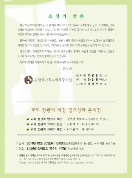 제8차 화해사역 세미나 본문 제8차 화해사역 세미나 10월 30일(목) 첨부와 같이 세미나를 개최하오니많은 관심과 참여 부탁드립니다. 약도는 아래 사이트를 참고바랍니다. 양수리수양관http://yangsoori.or.kr/ 관리자 조회 2,363회 2014-10-08 00:00 수정 삭제 목록 댓글목록 이전글 제5차 정기 총회 개최 15.01.21 다음글 개원 6주년 기념 감사 예배 14.04.07