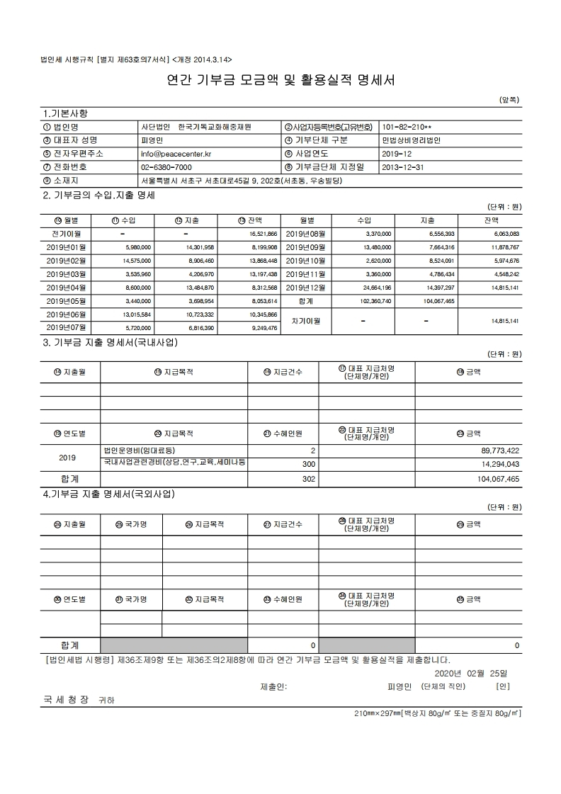 2019년 연간 기부금모금액 및 활용실적명세 본문 2019년 연간 기부금모금액 및 활용실적명세 2019년 연간 기부금모금액 및 활용실적명세 관리자 조회 1,158회 2020-02-25 00:00 수정 삭제 목록 댓글목록 이전글 2020년 연간 기부금모금액 및 활용실적명세 21.03.30 다음글 2018년 연간 기부금모금액 및 활용실적명세 19.03.25